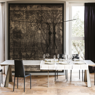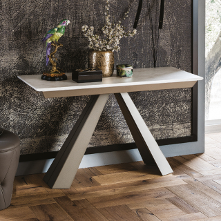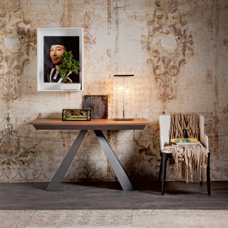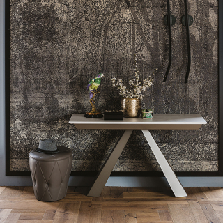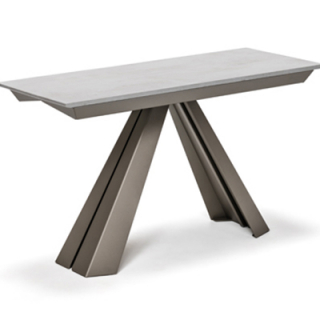 CONVIVIUM - стильная консоль, сочетающая в себе эстетику и функциональность. Модель доступна в двух версиях: стационарная консоль и консоль механизмом трансформации способным раздвинуть столешницу до трех метров. Поэтому изделие CONVIVIUM можно использовать и как консоль и как гостевой вариант обеденного стола. Основание: металл. Столешница: ламинированная плита.