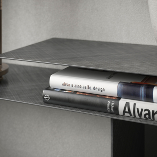 Консоль TEE - пример концептуального и структурного минимализма. Консоль изготавливается из двух металлических листов. Все углы немного закруглены, что придает изделию безопасности. Для заказа доступны два размера консоли.