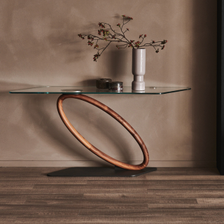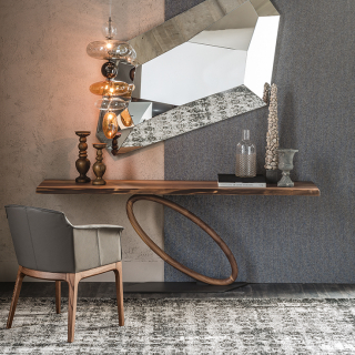 TOUR - стильная дизайнерская консоль из современного каталога фабрики Cattelan Italia. Консоль впечатляет своим необычным, скульптурным основанием из массива дерева. Столешница может быть изготовлена из прозрачного стекла и иметь форму скошенного прямоугольника или может быть изготовлена из натурального дерева в форме прямоугольника.