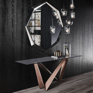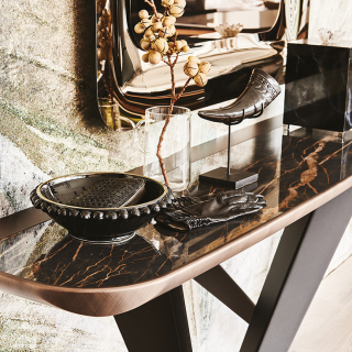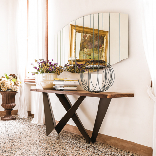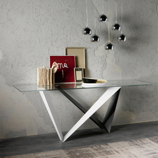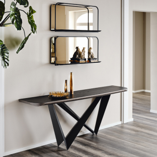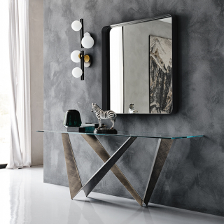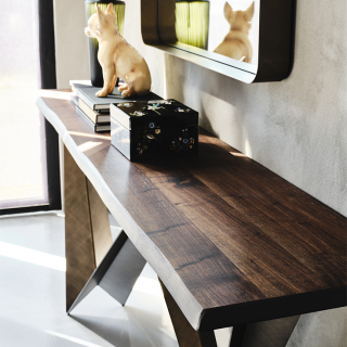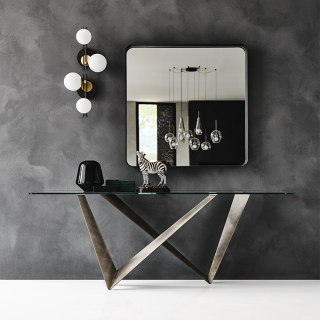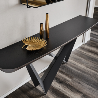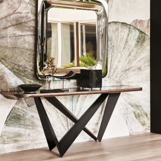WESTIN - консоль с экстраординарным дизайном. Консоль имеет несколько версий: со столешницей из стекла, с прямоугольной столешницей из натурального массива дерева, со столешницей из керамики, обрамленной металлическим кантом и со столешницей из дерева, обрамленной металлом. Для заказа доступны различные размерные варианты.