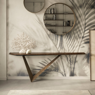 VARENNE - еще один новый шедевр фабрики Cattela Italia. Консоль привлекает к себе внимание своими необычными формами, геометрией, роскошными материалами, создающими идеальный баланс. Основание консоли выполнено из металла. Столешница натуральный массив дерева, края которого контурно обработаны и имеют различные толщины. Varenne может быть правосторонняя или левосторонняя.