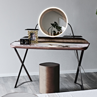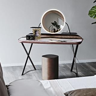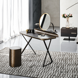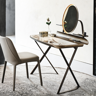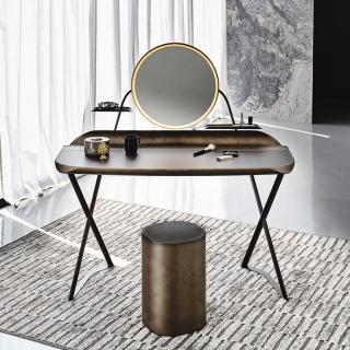 COCOON - элегантный туалетный столик с зеркалом. Зеркало имеет светодиодную подсветку. Корпус столика выполнен из металла. Столешница доступна в керамике или сверхпрочной натуральной коже.