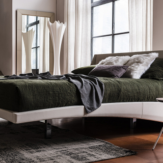 DYLAN - необычная, дизайнерская кровать от Cattelan Italia. Она способна приятно удивить своим смелым и нетрадиционным внешним видом. Основание соединено с изголовьем и образует динамичную объемную форму. Ножки выполнены из металла. Обивка доступна в эко-коже, ткани или натуральной коже. Модель разработана Andrea Lucatello.