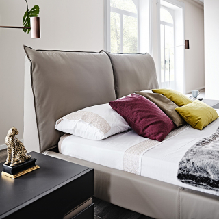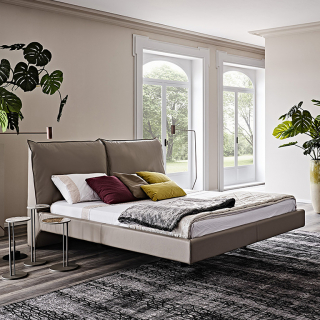LUKAS - мягкая кровать в современном, минималистичном стиле от итальянской фабрики Cattelan Italia. Кровать имеет высокое изголовье, состоящее из двух подушек и закругленного каркаса упирающегося в пол. Корпус кровати выглядит очень необычным образом, за счет "утопленных" ножек, кровать как бы парит над полом. Кровать может быть выполнена в обивке из искусственной кожи, ткани или натуральной кожи. Для заказа доступно пять размерных вариантов, каждый из которых оснащен ортопедической решеткой.