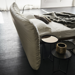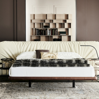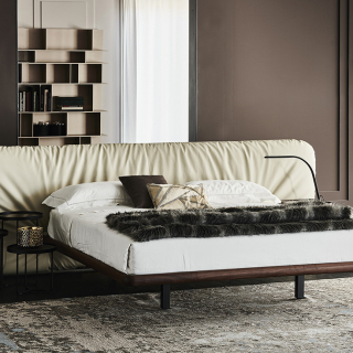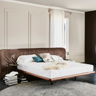 MARLON - оригинальная двуспальная кровать итальянского производства Cattelan Italia. Модель отличает большое и мягкое изголовье, которое украшено небольшой плиссировкой. Само спальное место как-будто парит над поверхностью пола, эта оптическая иллюзия обусловлены "утопленным", скрытым ножкам. Корпус спального места выполнен из натурального массива дерева и доступен в двух отделочных вариантах. В линейке MARLON 6 размерных вариантов кроватей, каждая из которых оснащена ортопедическим основанием.