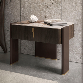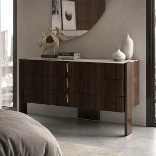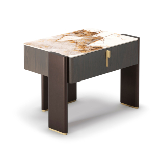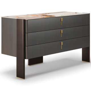 JULIAN - комод и прикроватная тумба из новой коллекции Cattelan Italia. Это изысканная композиция из дерева, керамики и металла. Тумба и комод оснащены функциональными выдвижными ящиками. Ручки и основание ножек имеют контрастную отделку латунь. По желанию столешницу можно изготовить или из бронзового зеркала или из керамики.