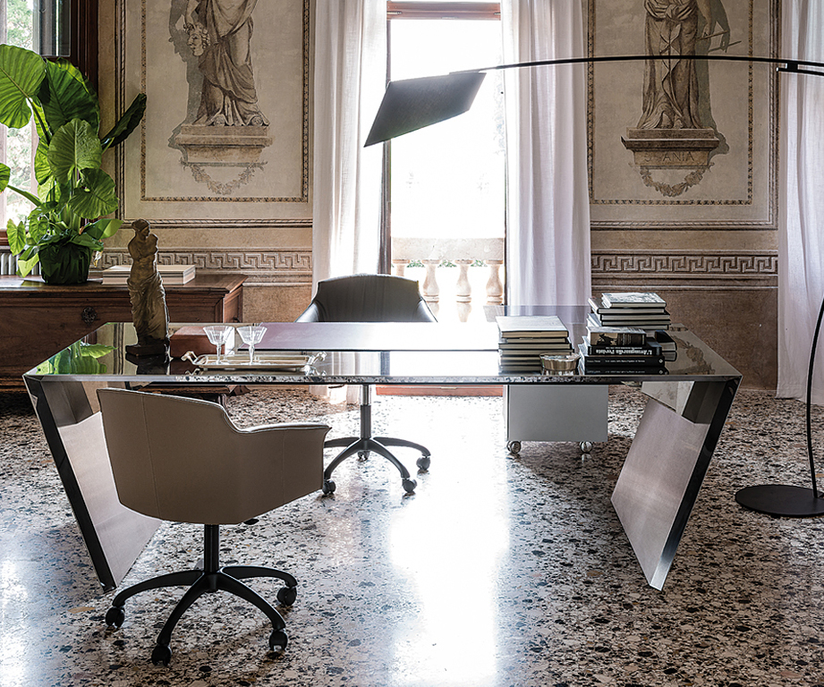 Потрясающие письменные столы и туалетные столики. В ассортименте фабрики Cattelan Italia представлены небольшие, компактные варианты столов для домашнего кабинета, а так же большие и презентабельные столы для офиса. Богатый выбор отделочных материалов: натуральное дерево ценных пород, сверхпрочная керамика, закаленное стекло, натуральная кожа и металл. Многие из моделей оборудованы вместительными ящиками, накладками органайзерами на столешницу и зеркалами. Так же, в каталоге Каттелан Италия есть столы, регулируемые по высоте, со специальным подъемным механизмом.