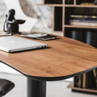 MALIBÙ - рабочий стол в стиле элегантного минимализма от итальянской фабрики Cattelan Italia. Столешница имеет округлые, приятные формы и выполнена из ценных пород дерева. Цилиндрической основание стола изготовлено из металла.