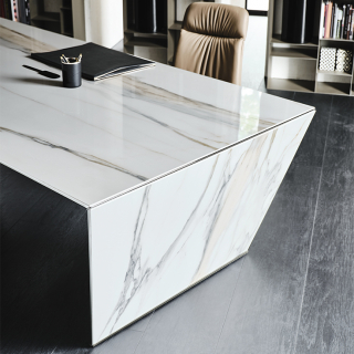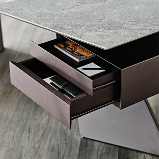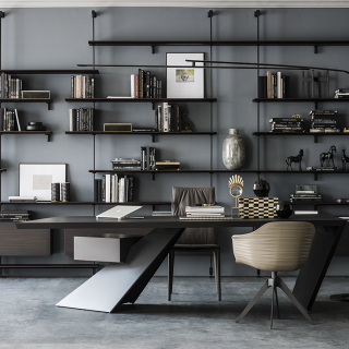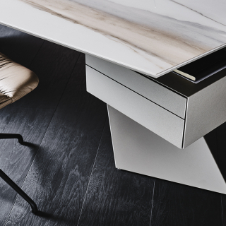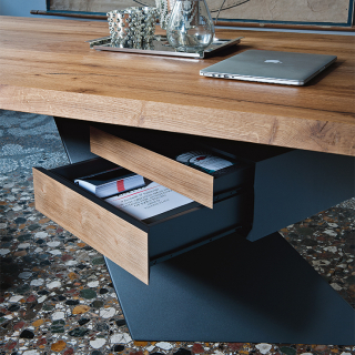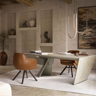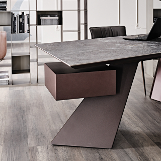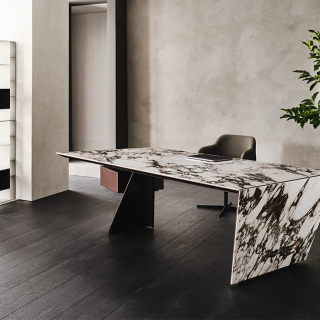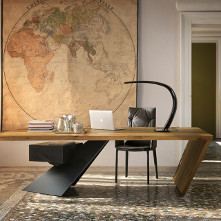 NASDAQ - роскошный офисный стол, который станет идеальным местом для работы и деловых переговоров. Геометрические формы и материалы создают эффект монолита, большого и надежного стола. Деревянный ящик не поддается гравитации, он установлен на стальной ножке, которая разрезает пространство мощной диагональю. Стол доступен в натуральном дереве или керамике.