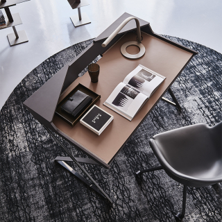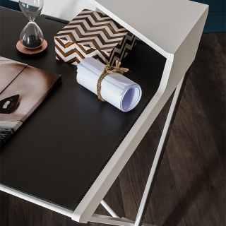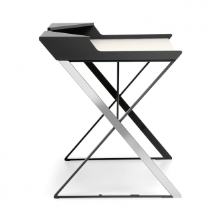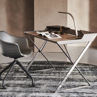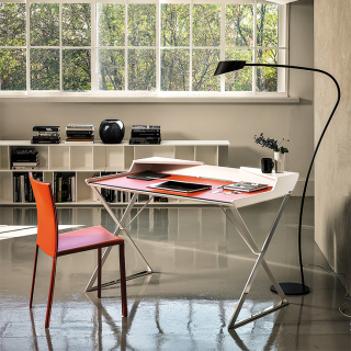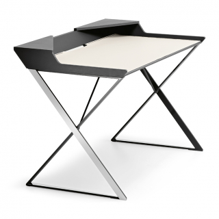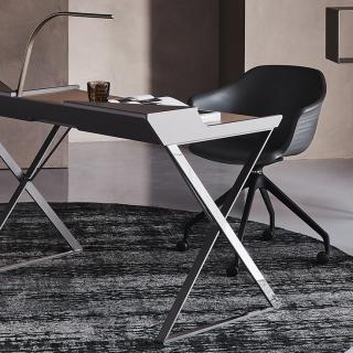 QWERTY - небольшой столик, который идеально подойдет для оборудования рабочего места в доме. Тонкие металлические ножки имеют скрещенную форму в виде "X". Столешница выполненная из дерева, дополняется кожаной накладкой, доступной в различных цветах. Дизайнер модели: Andrea Lucatello. Фабрика: Cattelan Italia. Производство: Италия.