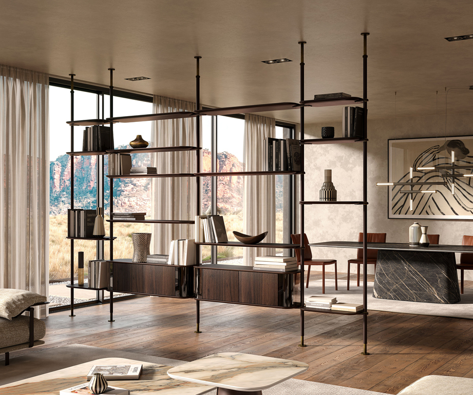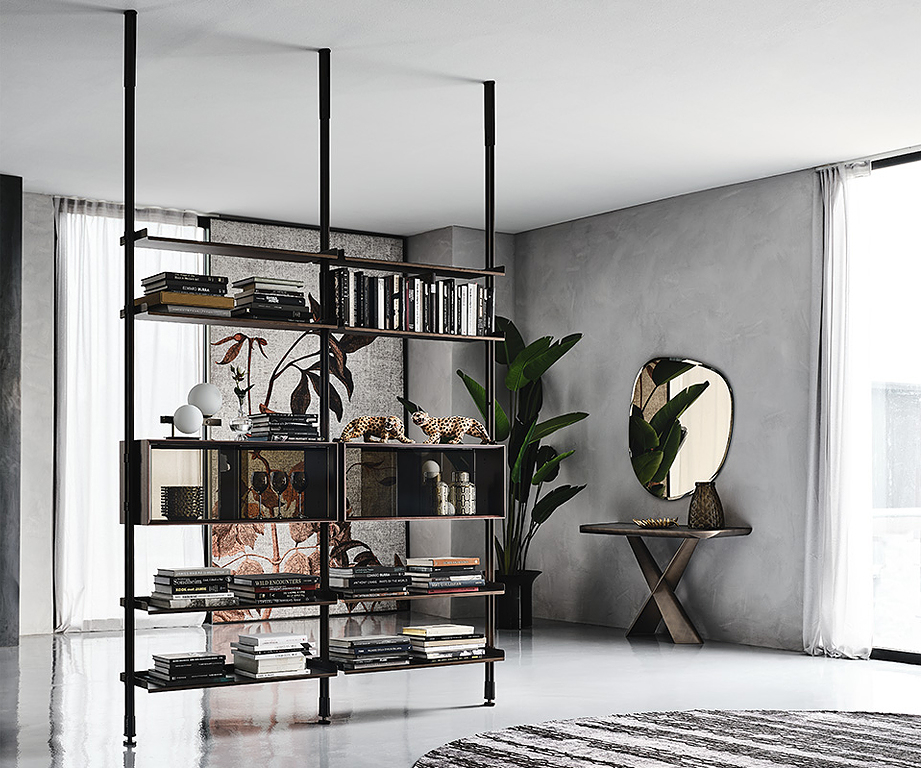 Оригинальные, дизайнерские полки и стеллажи от итальянской мебельной фабрики Cattelan Italia. В каталоге современной коллекции представлены различные модульные варианты стеллажей, которые можно скомбинировать по количеству и подобрать по отделочным материалам самостоятельно, исходя из потребностей Вашего помещения. Для заказа доступны стеллажи с креплением к стене или стеллажи с креплением к потолку и полу, которые можно установить по центру пространства, в качестве межкомнатной перегородки. В ассортименте интересные полки, которые могут быть выполнены из различных материалов: металла, зеркала или массива дерева.