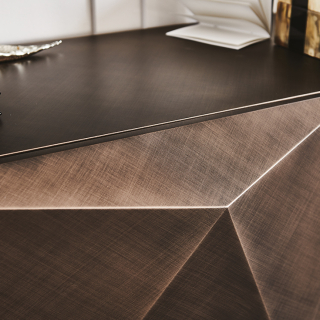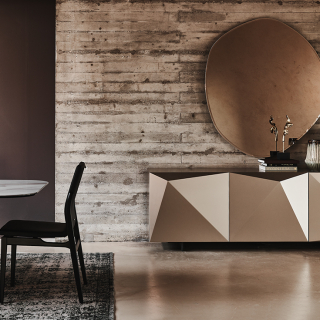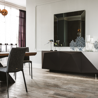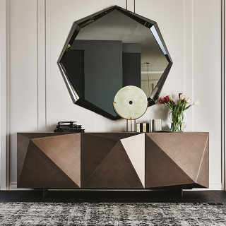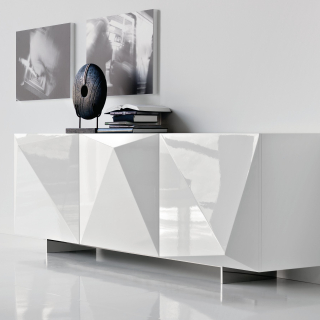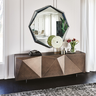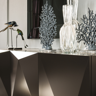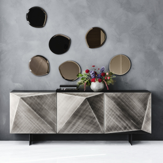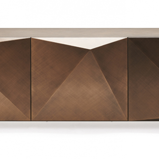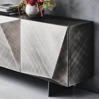 KAYAK - эклектичный и объемный сервант, творение дизайнера Andrea Lucatello. Производство: Италия. Фабрика: Cattelan Italia. Отделка лак или металлический лист с брашировкой, которая создает калейдоскопическую игру света. Внутри полки из прозрачного стекла. Доступно четыре размерных варианта.