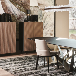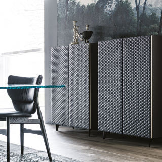 TIFFANY - элегантный и изящный высокий сервант от фабрики Cattelan Italia. Уникальным украшением серванта являются его дверцы, которые изготавливаются с кожаной обивкой с декоративной ромбовидной стежкой. Большой выбор отделочных материалов и цветов.
