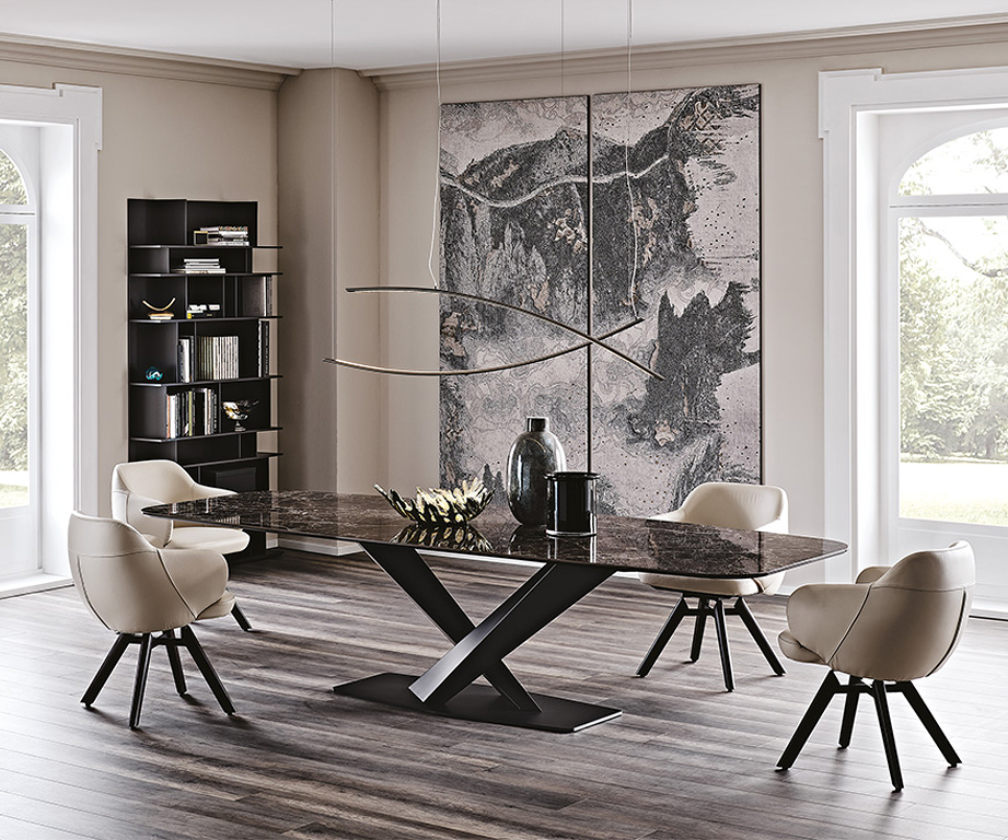 На нашем сайте Вы сможете купить потрясающие обеденные столы итальянского производства Cattelan Italia. В каталоге фабрики представлены различные по стилю модели. Каждый из обеденных столов имеет массу размерных вариантов. По Вашему выбору можно подобрать отделку основания и столешницы. В арсенале Каттелан Италия многообразие отделочных материалов: натуральное дерево, металл, стекло с декоративным художественным принтом, чеканное стекло, керамика, мрамор, ламинат.