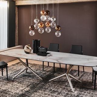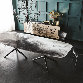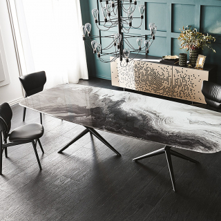 ATLANTIS стол производства итальянской мебельной фабрики Cattelan Italia. Изысканная модель, которая сможет стать украшением обеденной зоны. Тонкое металлическое основание оригинальной формы доступно в четырех цветовых вариантах: титан, бронза, графит и черный. Столешница может быть изготовлена из стекла с декоративным художественным принтом, керамики и натурального массива дерева. Форма столешницы: прямоугольная, с закругленными углами, сложной формы. Для заказа доступно два размера.