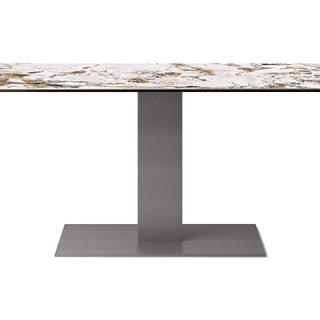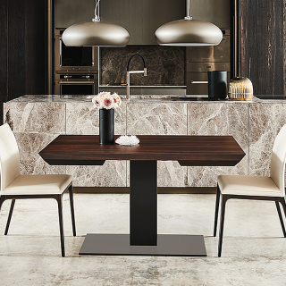 Обеденный стол в стиле минимализма ELVIS от итальянской фабрики Cattelan Italia. Дизайн - Alberto Danese. Внешний вид этого прекрасного изделия делает его неподвластным времени предметом мебели. Основание стола выполнено из металла. Столешница доступна в стекле, керамике или массиве дерева. ELVIS имеет версию с трансформирующейся столешницей и позволяющей оборудовать обеденный стол под большее количество персон.