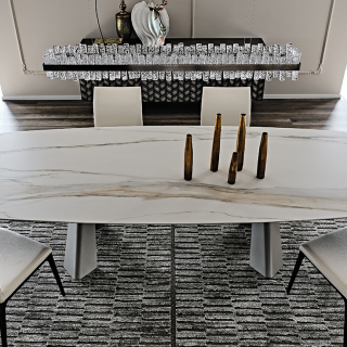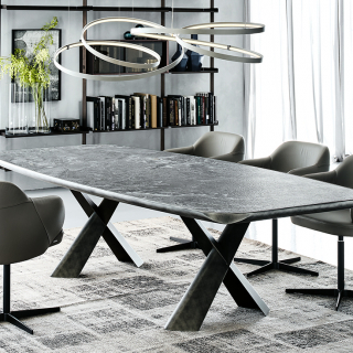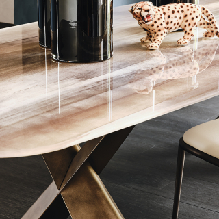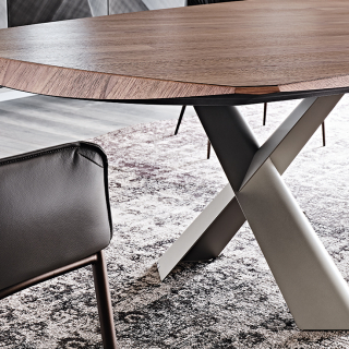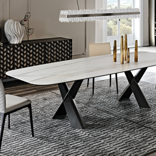 Ненавязчивый и оригинальный дизайн - это обеденный стол MAD MAX. Он идеально сбалансирован по своей архитектуре и является неподвластным времени предметом мебели. Ножки из металла образуют параллельные икс-образные опоры. Столешница может быть выполнена из декоративного стекла с печатью, керамики или натурального массива дерева. Для заказа доступны различные размерные варианты. Дизайн модели разработан Paolo Cattelan в 2020 году.