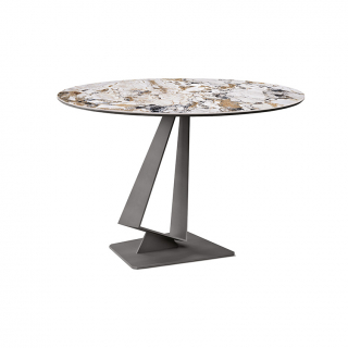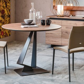 ROGER - круглый стол со сбалансированным дизайном. Итальянское производство. Фабрика Cattelan Italia. Основание выполнено из металла и доступно в двух цветах. Столешница может быть выполнена из стекла, керамики или массива дерева. Дизайнер модели: Paolo Cattelan.