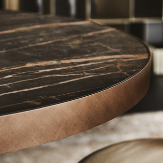 SATURNO - небольшой круглый стол итальянской фабрики Cattelan Italia. Минималистичный дизайн, сочетающий в себе практичность и изысканность. Коническое основание выполнено и окантовка выполнены из металла, столешница - сверхпрочная керамика. Вашему выбору доступны 2 размерных варианта.