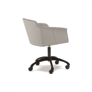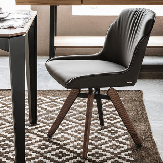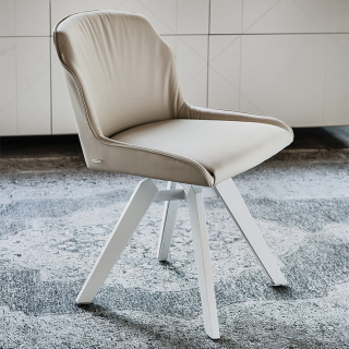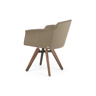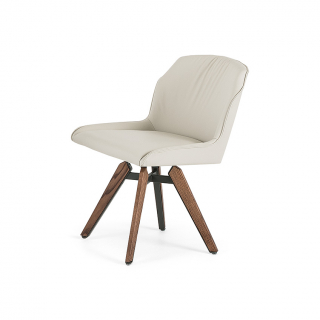 TYLER - стул, который имеет элегантный внешний вид. Модель доступна в варианте без подлокотников или как полу-кресло с подлокотниками. Два варианта ножек: 4 ножки из массива дерева или одно единое основание из металла, оснащенное колесиками. Все варианты имеют поворотный механизм.