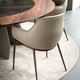 SCARLETT - стулья с изысканными и элегантными формами. Спинка, подлокотники, сидение имеют небольшой изгиб и выглядит словно лепестки фиалки. Стулья доступны для заказа в различных вариантах исполнения: с четырьмя металлическими ножками, с четырьмя деревянными ножками, с общим крестообразным основанием и возможностью поворота, а так же с общим г-образным металлическим основанием. В конструкторе товара можно подобрать любую желаемую обивку: эко-кожа, ткань, микро-нубук, натуральная кожа, премиум кожа. Ножки в металле доступны в пяти цветах: Титаниум, Бронза, Графит, Жемчужный и Черный. В варианте из дерева: Черный с открытыми порами, Натуральный Дуб, Орех Каналетто, Жженый Дуб.