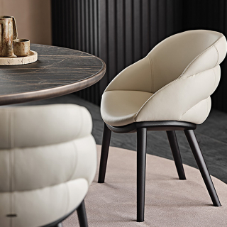 CAMILLA - стул с максимально удобной, обволакивающей спинкой, которая имеет декоративные извилистые линии на своем корпусе. Стул представлен в двух вариантах исполнения: с деревянными и с металлическими ножками. Широкий выбор обивочных материалов. Стул разработан в 2022 году дизайнером Luca Signoretti.