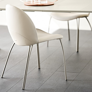 HOLLY - модель с округлыми и мягкими линиями. Стул имеет тонкие и изящные ножки, выполненные из металла. Изогнутый шов на задней части спинки подчеркивает округлость этого современного стула. На выбор доступны различные обивочные материалы и цвета.