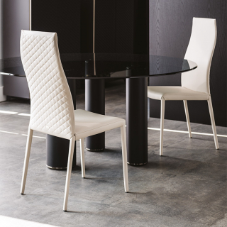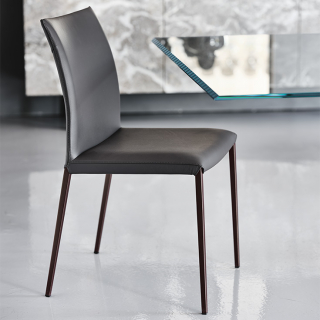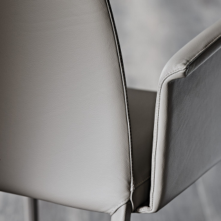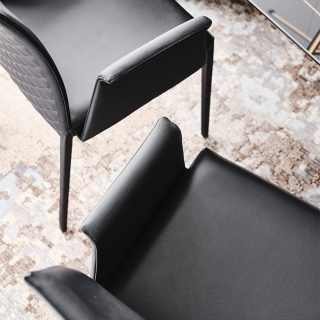 NORMA - стул в современном, минималистичном дизайне. Модель доступна в различных модификациях: стул со стандартной или высокой спинкой, с подлокотниками и без подлокотников, с декоративной стежкой спинки и без стежки. Так же стул имеет две версии с вариантами отделки ножек: ножки могут быть выполнены из металла или иметь обивку, такую же как и у сиденья.