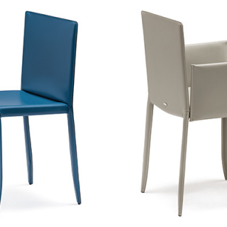 PIUMA - современная модель стульев, отличающаяся уникальным шармом и изяществом. Стулья представлены в двух версиях: одна из которых имеет гладкую спинку, а другая украшена декоративным рисунком - стёжкой. PIUMA доступен в варианте без подлокотников, а так же в виде полу-кресла с подлокотниками.