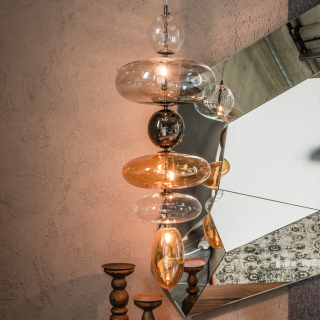 BABAN - стильная и одновременно изящная подвеска для мягкого источника света. Композиция светильника состоит из плафонов разного размера и цвета: прозрачного, дымчатого и оранжевого стекла. Дизайн модели разработан: Andrea Lucatello. Фабрика: Cattelan Italia. Страна производства: Италия.