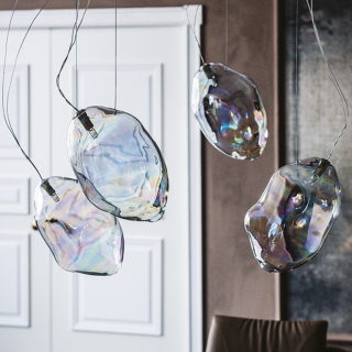 CLOUD - коллекция легких, воздушных светильников в современном стиле. Модель представлена в виде настольной лампы или подвесного потолочного светильника, который доступен в варианте с одним, шестью или двенадцатью плафонами. Отделка плафонов представлена в нескольких вариантах: в стекле Iride, которое имеет переливы разнообразных цветов, а так же в стекле Fumè, более темный оттенок. Дизайн модели разработан: Oriano Favaretto. Фабрика: Cattelan Italia. Страна производства: Италия.