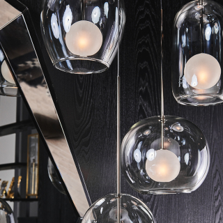 MELODY - эффектный подвесной светильник со стеклянными плафонами. Модель имеет несколько конфигураций: плафоны в форме конуса, шара, мягкого цилиндра или эллипсоида. Плафоны изготавливаются в сером дымчатом стекле - FUMÉ. Основание светильника металл. Для заказа доступен вариант с одним подвесом или же группами от 2 до 12 плафонов на одном основании. Для расчета комбинированного варианта, обращайтесь к менеджеру интернет-магазина. Дизайн модели разработан: Gregorio Facco. Фабрика: Cattelan Italia. Страна производства: Италия.