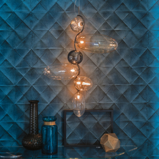 TOPAZ - подвесной светильник со сферическими стеклянными плафонами и волнообразным металлическим стержнем. Плафоны светильника имеют различные размеры и отделку. Дизайн модели разработан: Andrea Lucatello. Фабрика: Cattelan Italia. Страна производства: Италия.