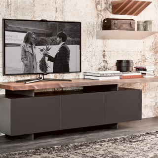 SENECA - стильная и элегантная тумба для телевизора идеально подойдет для современной гостиной. В пространстве между верхней полками и ящиками присутствует открытый отсек. Верхняя полка выполнена из натурального массива дерева с неровным краем. Для заказа доступны два размерных варианта тумбы: трех дверная и четырех дверная.