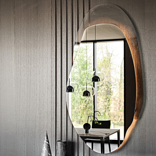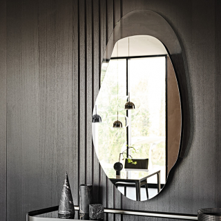 AKUMAL - настенное зеркало сложной формы из новой коллекции 2022 года Cattelan Italia. Это зеркало состоит из неправильных извилистых изгибов и располагается в двух уровнях: верхний зеркальный и нижний из дымчатого стекла. При оснащении светодиодной подсветкой, зеркало становится еще более эффектным.