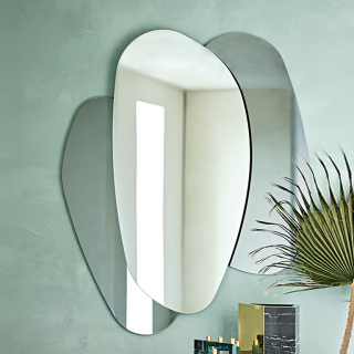 ULISSE - настенное зеркало сложной формы, имеющей плавные изгибы и обтекаемые линии. Зеркало состоит из трех элементов: справа и слева дымчатое или бронзовое зеркало, по центру серебристое зеркало. Производство: Италия. Фабрика: Cattelan Italia.
