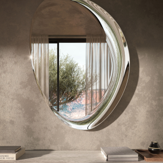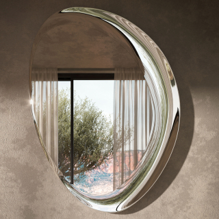 ASCOT - настенное зеркало сложной формы, имеющей плавные изгибы и обтекаемые линии. Новая коллекция 2024 года. Зеркало представлено в серебристом, сером и бронзовом исполнении. Два размерных варианта. Производство: Италия. Фабрика: Cattelan Italia.