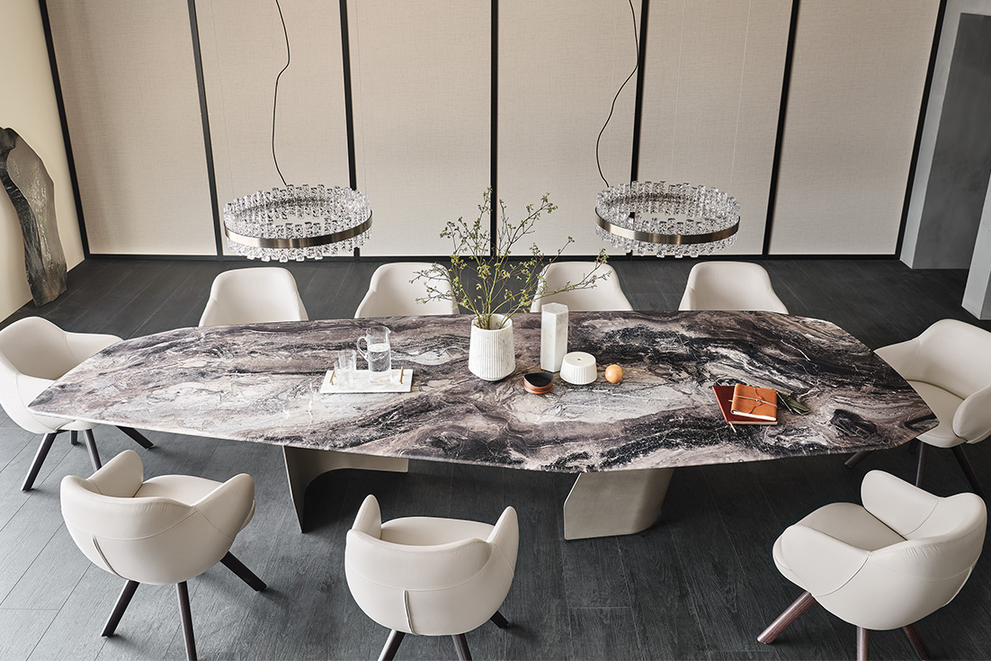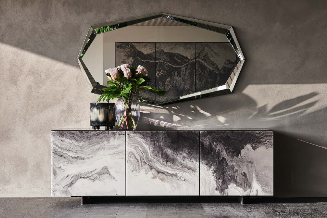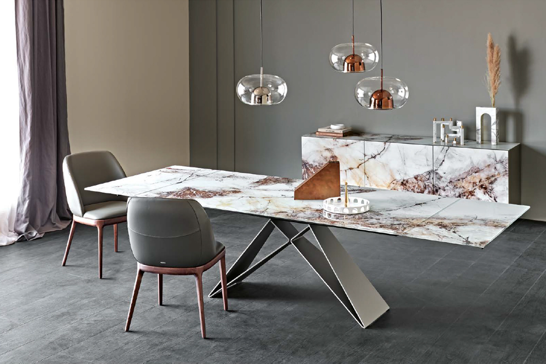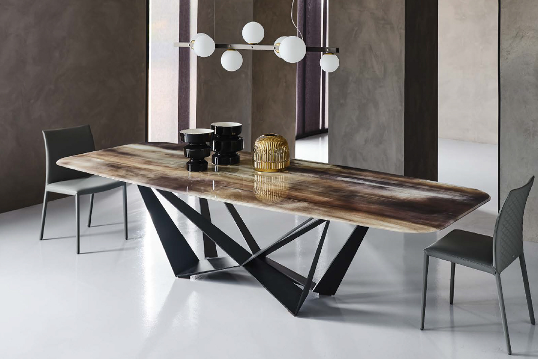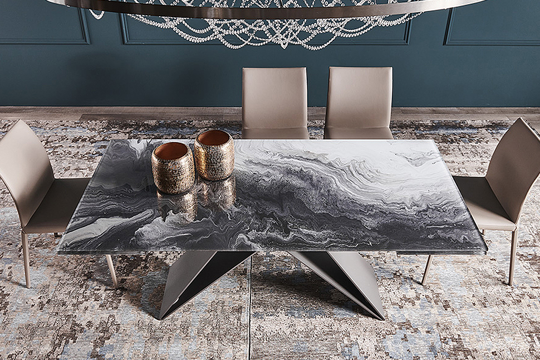 Среди материалов итальянской мебельной фабрики хотелось бы выделить материал Crystalart. Это стекло с потрясающим художественным принтом. Независимо от того, что на стекло нанесена печать, оно остается таким же блестящим. Эксклюзивности материалу придает сам рисунок, который выглядит очень натуралистично. Доступно четыре цветовых варианта: Crystalart Marble OROBICO, Crystalart Marble COTOPAXI, Crystalart CY01 и Crystalart CY02. Материал Crystalart используется для столешниц обеденных столов Cattelan Italia и для декорирования дверок сервантов. Ниже представлены основные цвета и изделия изготовленные из данного материала.
